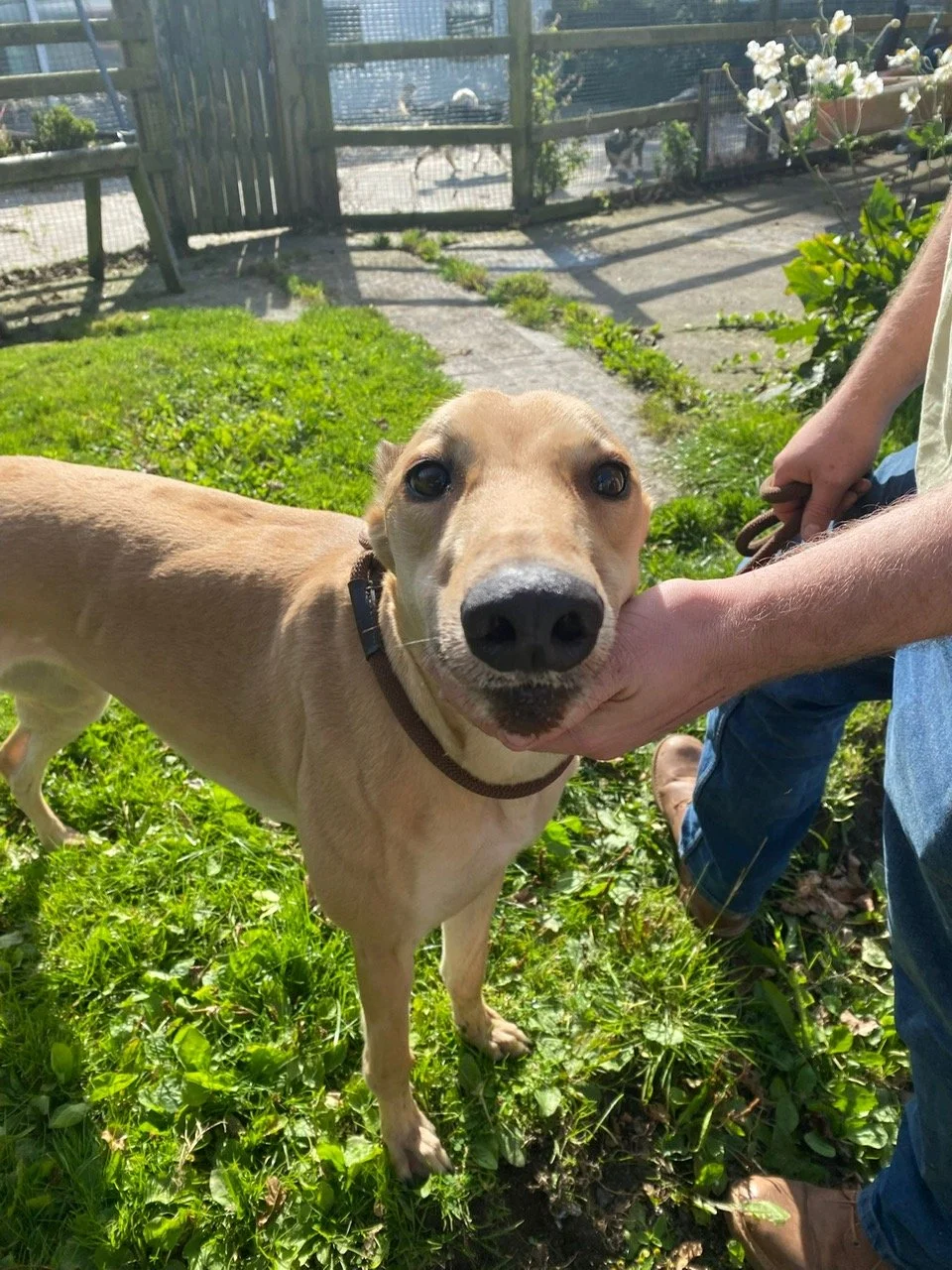 3 year old Duchess is a retired racing greyhound. She gets on well with other dogs but cannot be rehomed with small dogs, cats, or other small animals due to her breed’s high prey drive. She will do best in a breed experienced home to give her the fun filled retirement she deserves.